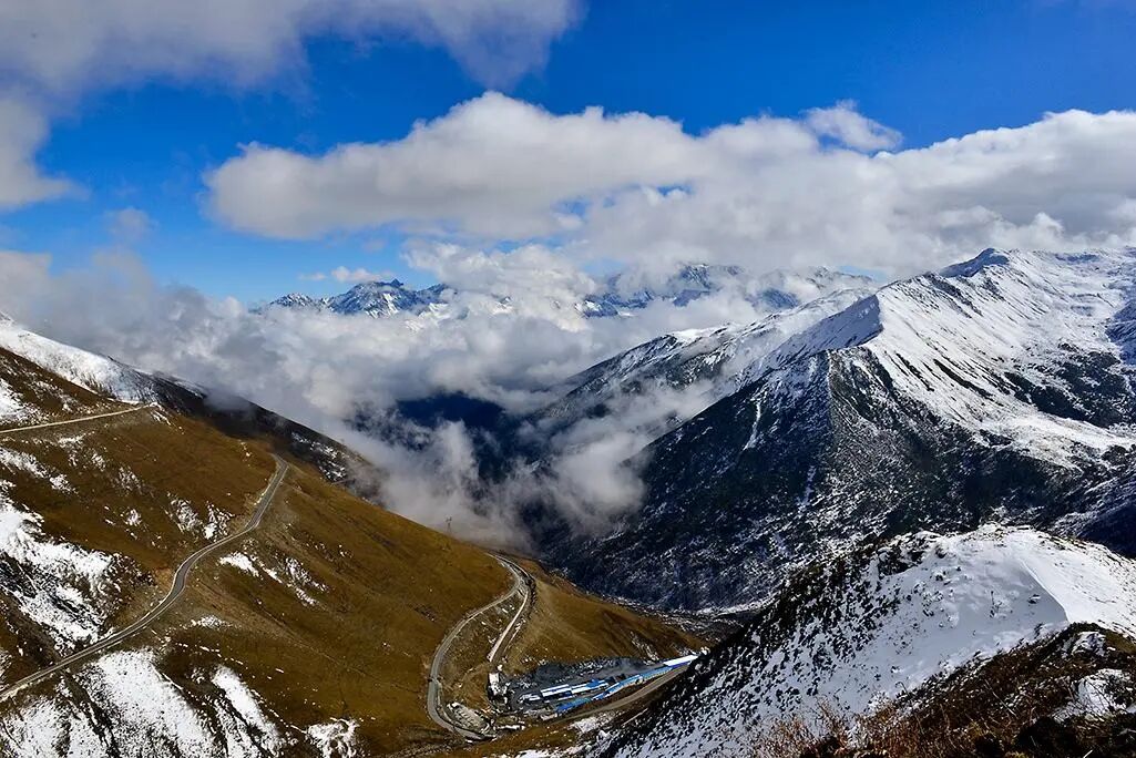 2014年10月,宝兴县嘎日村为帮助当地藏族群众发展牧业而修建了一条24公里的“通天路”。该路尽头便是达瓦更扎观景平台,一路地势陡险,却有着辽阔的风光。