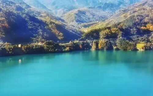 湛蓝的湖水比泸沽湖更深,秋季河谷两岸更是五彩缤纷,十分壮观。