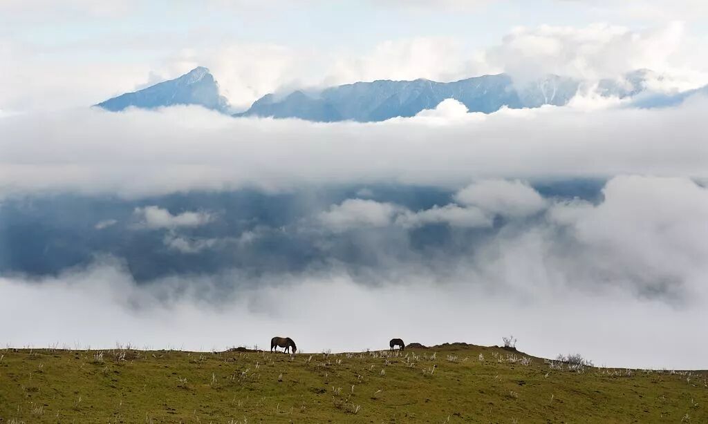 从山下的海子到草甸再到山上的云海,一天可以过完四季。