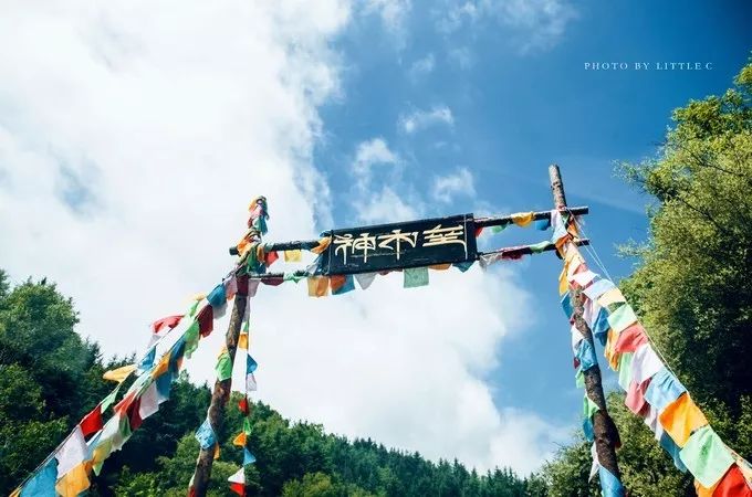 神木垒距离藏寨只有五分钟步行路程,茂密的红杉森林,参天古木。