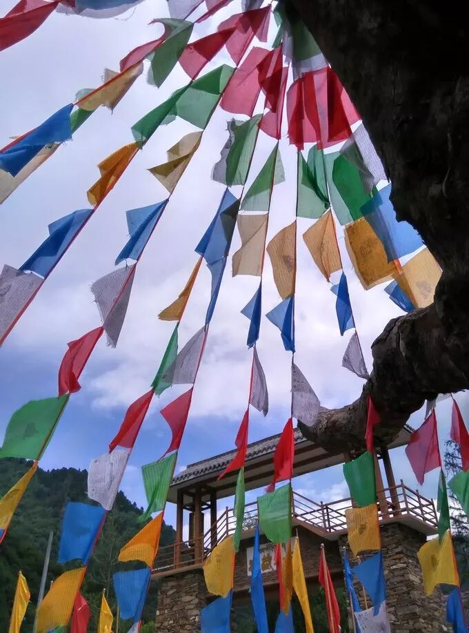 刚进藏寨门口,就会看见迎风招展的风马旗,特别有民族特色,当地人解释“旗子寓意着祥和”